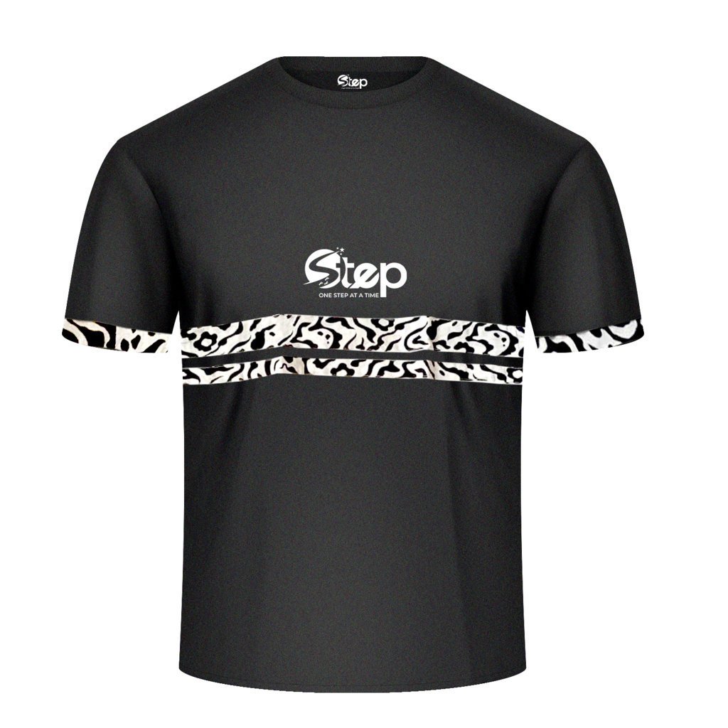 The STEP Black Wild Zebra Stripe T-Shirt turns heads with zebra-inspired stripes wrapping around the chest and sleeves. This high-contrast design pairs wild energy with sleek urban fashion.