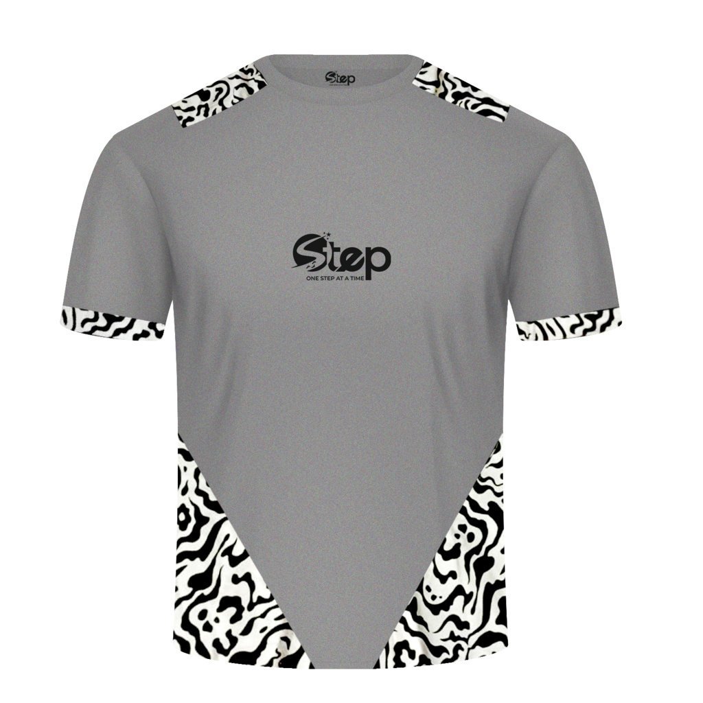 Embrace a refined streetwear aesthetic with this grey STEP T-shirt, highlighted by striking black abstract patterns on the sleeves and lower panels. Made from soft, breathable material, it guarantees comfort while delivering a stylish, modern edge. Ideal for casual days, sports activities, or layering under jackets for a smart-casual vibe.